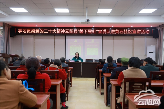 云陽(yáng)網(wǎng)訊(實(shí)習(xí)生 賀元河 匡寧娟)3月22日,云陽(yáng)縣“磐下雲(yún)虹”宣講隊(duì)走進(jìn)黃石鎮(zhèn)黃石社區(qū)開(kāi)展黨的二十大精神宣講活動(dòng)。