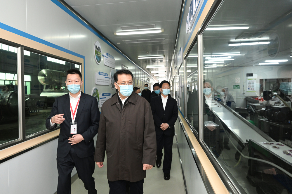 ▲3月23日上午,在梁平區(qū)綠色食品產(chǎn)業(yè)園,市委書記袁家軍了解預制菜特色產(chǎn)業(yè)發(fā)展情況。記者 蘇思 攝/視覺重慶
