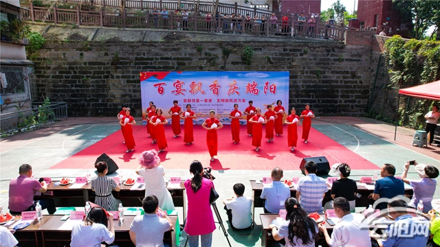 云陽網(wǎng)訊(記者 譚啟云)包粽子、吃百家宴、看旗袍秀,6月20日,青龍街道天鵝社區(qū)以美食為媒介,在社區(qū)內開展了一場“百宴飄香慶端陽”為主題的端午節(jié)活動。街坊鄰里歡聚一堂,包粽子,吃百家宴,看旗袍秀,品嘗幸福滋味,共話鄰里情深。