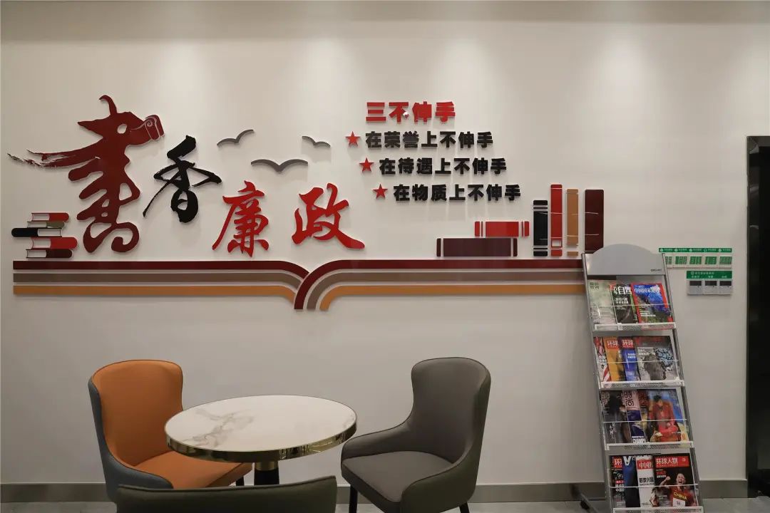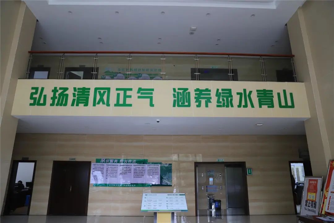 縣生態(tài)環(huán)境局相關(guān)負(fù)責(zé)人介紹道,“我們最初的設(shè)計理念就是根據(jù)習(xí)近平總書記提出的‘綠水青山就是金山銀山’的生態(tài)環(huán)境保護(hù)要求,提煉了“弘揚(yáng)清風(fēng)正氣涵養(yǎng)綠水青山”的主題,整體色彩以藍(lán)色、綠色為主,并根據(jù)科室工作的性質(zhì)和特點(diǎn),分別在各樓層嵌入清廉文化元素,督促提醒干部職工們在工作上勤政廉政?!?/p>