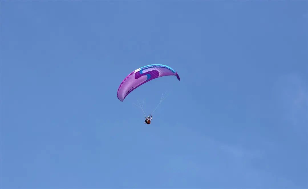 滑翔傘定點(diǎn)賽是一種具有較高觀賞性的比賽形式,同時(shí),相較于常規(guī)賽事也更具挑戰(zhàn)難度?!敖裉焯鞖夥浅:茫L(fēng)向也適合飛行。”第一場(chǎng)滑翔奪得三分,選手游金川十分滿(mǎn)意。他表示能與國(guó)家級(jí)選手同臺(tái)競(jìng)賽,對(duì)于提高自身飛行技藝有很大幫助。