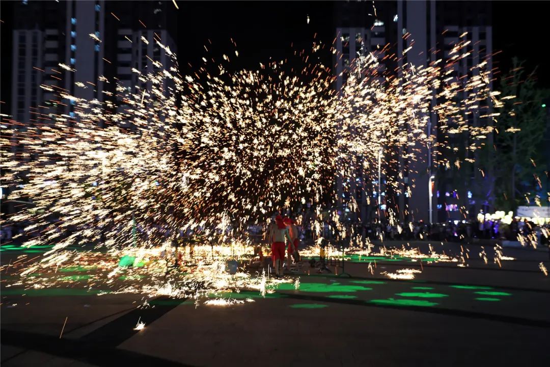 除了圍棋、古箏,現(xiàn)場還有焚香、插花、掛畫、點(diǎn)茶 等文人雅士風(fēng)俗體驗(yàn),也有蹴鞠、投壺等活動可以體驗(yàn),更有精彩絕倫的“打鐵花”非遺民俗表演,給予游客可食、可購、可看,有潮、有玩、有趣的假期氛圍。
