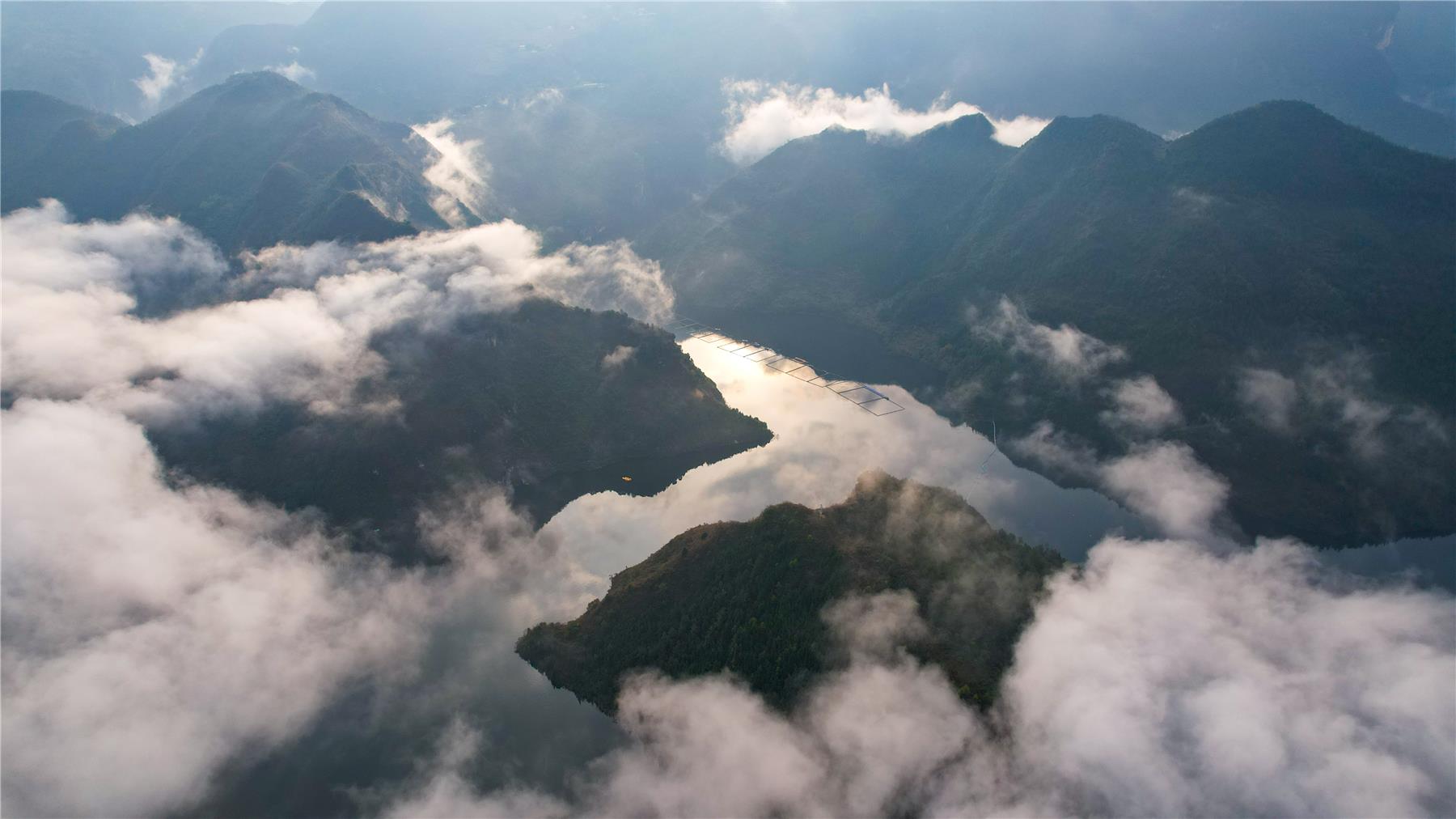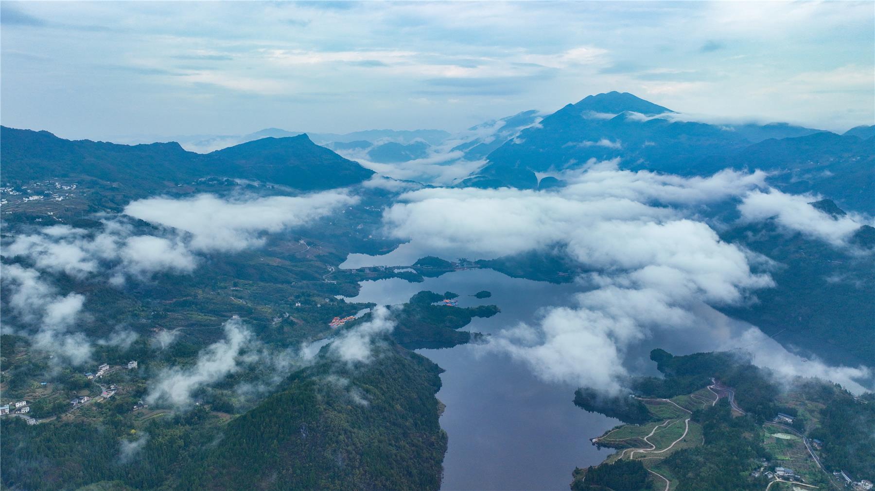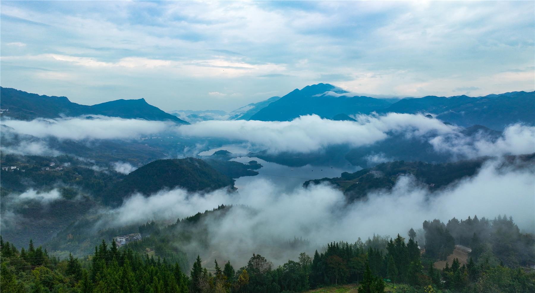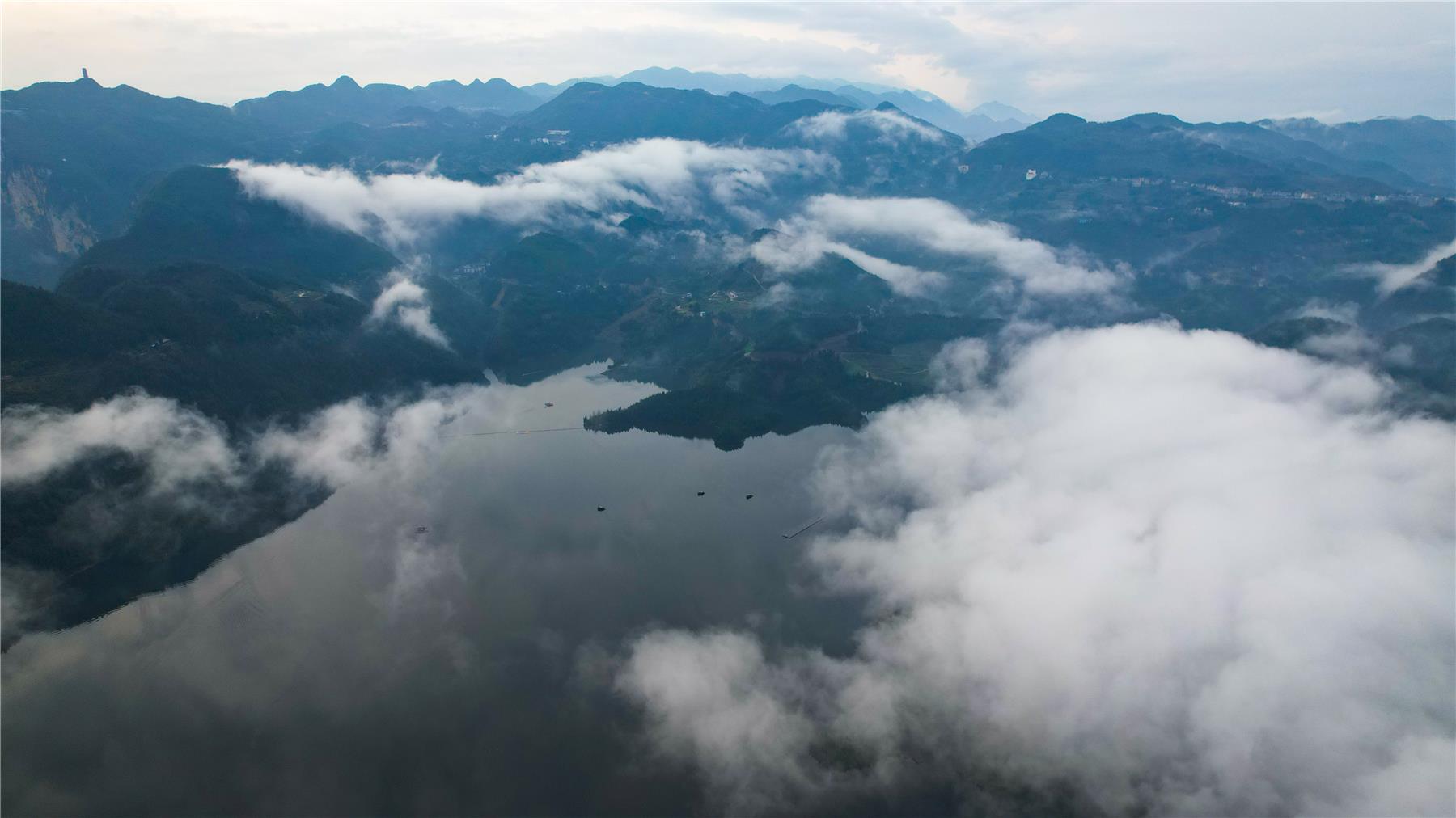 云陽(yáng)網(wǎng)訊(記者 譚啟云)“水光瀲滟晴方好,山色空蒙雨亦奇?!碧K軾的這首描寫西湖的詩(shī)句,也可作為清水湖的寫照。11月9日,位于云陽(yáng)縣清水土家族鄉(xiāng)的清水湖在遭遇短時(shí)強(qiáng)降水后出現(xiàn)平流霧景觀,清水湖煙雨朦朧,仿佛一幅水墨畫。