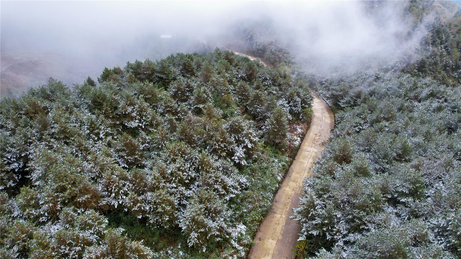 云陽(yáng)網(wǎng)訊(記者 張揚(yáng)鳳 譚啟云)受北方強(qiáng)冷空氣影響,從昨夜開(kāi)始,我縣部分高海拔地區(qū)迎來(lái)今冬首場(chǎng)降雪。在海拔1600多米的上壩鄉(xiāng)鑼鼓宕景區(qū),松林與冰雪相得益彰,云霧與崇山“相依纏綿”,儼然一幅山林映雪圖,好似人間仙境。