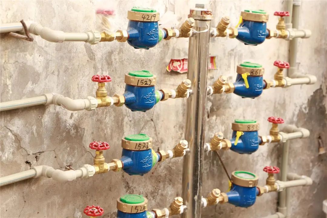 在民德社區(qū)磷肥廠宿舍小區(qū),嶄新的水表和統(tǒng)一安裝的水管排列整齊?!耙郧八芏际亲约籂康轿?,看起來很亂,現(xiàn)在給我們換了新水表,又統(tǒng)一更換了新水管,水壓更大了,用水更方便了?!本用窭钇叫χf。