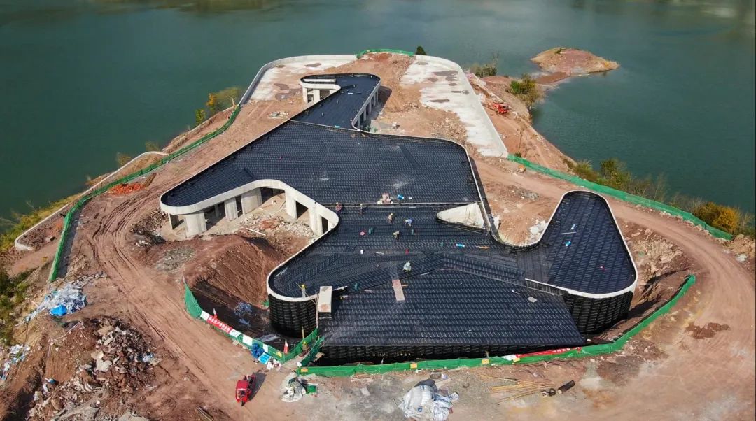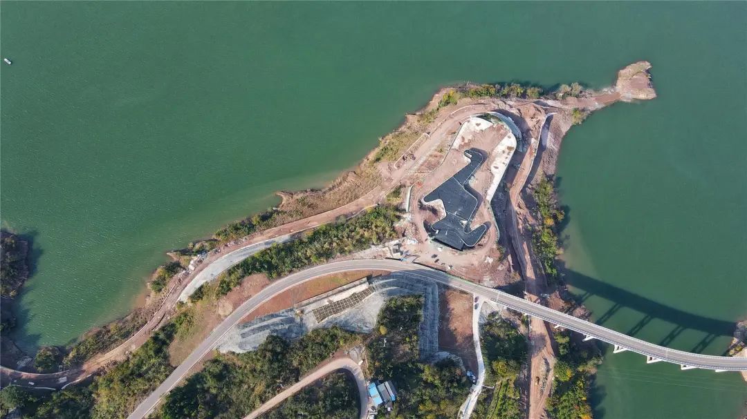 始建于2022年11月的東部游客接待中心已初具雛形,即將進(jìn)行內(nèi)部裝修和園建,空中俯瞰其主體建筑群,猶如一只行走在河畔的可愛(ài)恐龍。
