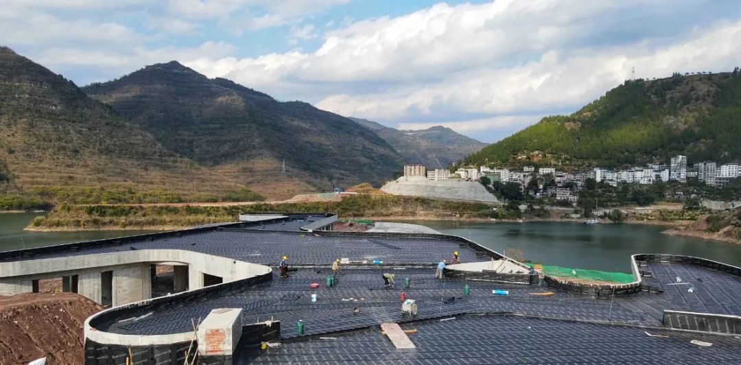 年末歲尾,來(lái)到云陽(yáng)恐龍國(guó)家地質(zhì)公園,各節(jié)點(diǎn)施工現(xiàn)場(chǎng)依然是一片繁忙的施工景象。在位于普安鄉(xiāng)豐河村的東部游客接待中心,20多名工人正抓緊進(jìn)行屋面防水層施工。