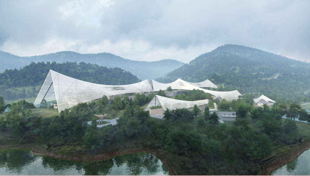 中心集游客集散、觀光、休憩等功能于一體,在建設(shè)上涵蓋了恐龍?jiān)亟ㄖ?、室?nèi)外基礎(chǔ)設(shè)施、恐龍主題小品雕塑、綠化景觀等,預(yù)計(jì)2024年6月完成全部施工。