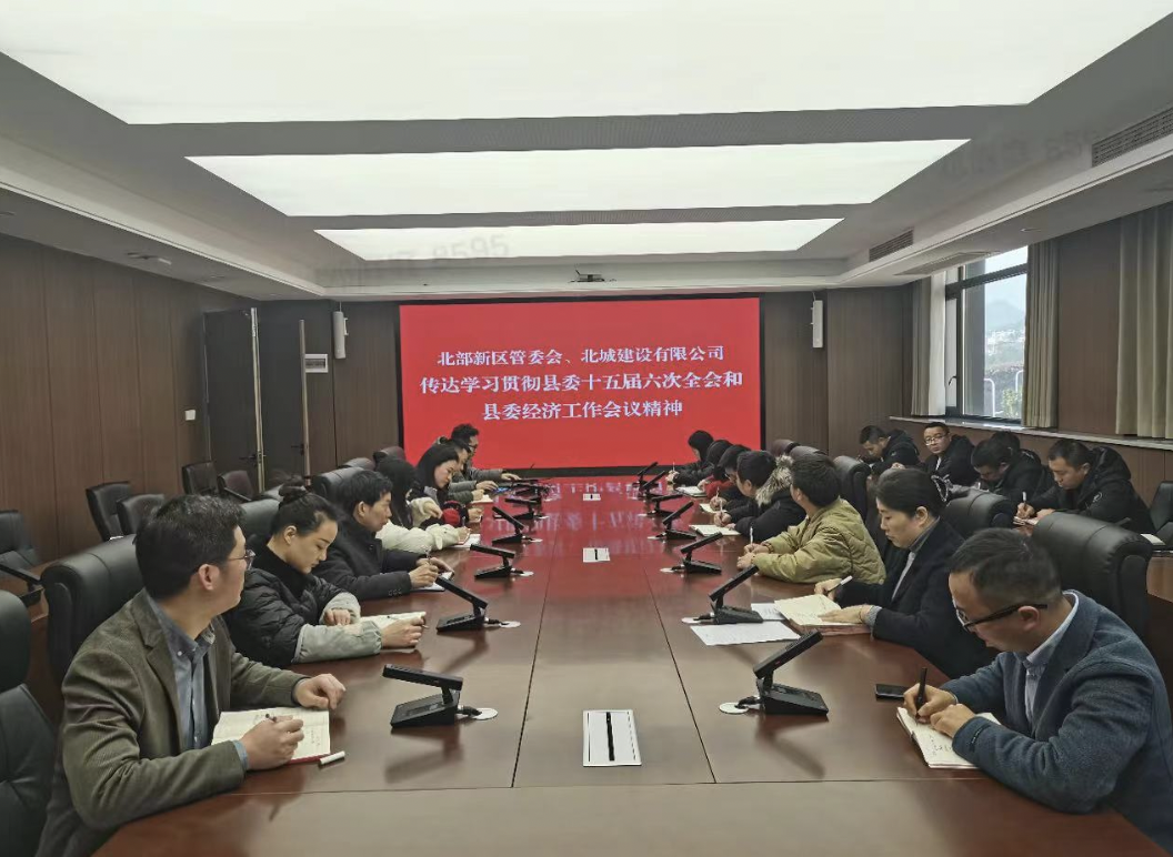 北部新區(qū)管委會召開全體職工會,傳達貫徹縣委十五屆六次全會精神。