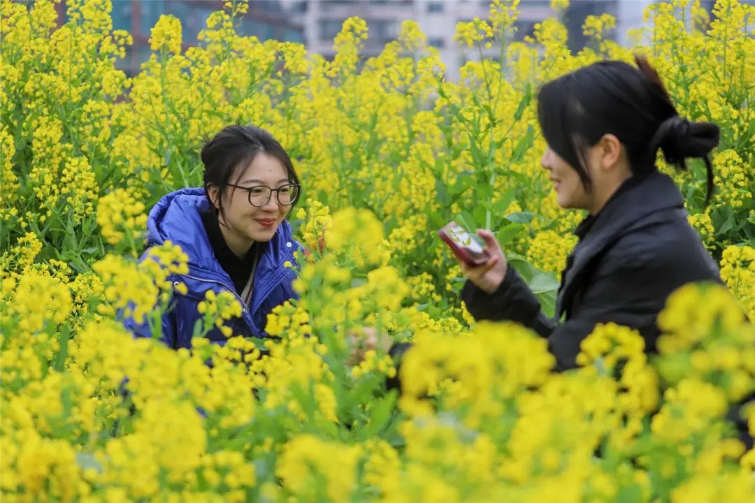 “這里的油菜花長(zhǎng)在道路兩旁,有延伸感,背后又有高樓,空間感也很好,就像城市里面的小花園一樣,非常美。”南溪鎮(zhèn)居民劉宇說(shuō)。
