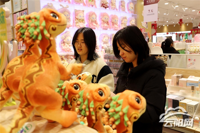隨著農(nóng)歷龍年的臨近,街上“年味兒”的氛圍感已逐漸濃厚。各具特色的龍年主題春聯(lián)、呆萌的龍掛件、龍形玩具、龍元素黃金飾品等走紅。市民在年貨挑選中感受著濃濃的年味兒,同時也體驗著傳統(tǒng)文化的獨特魅力。在城區(qū)一家精品店,記者看到,各種龍元素的玩具、頭飾擺放在顯眼的位置,市民們也紛紛挑選自己喜歡的飾品,作為我縣普安恐龍IP龍寶、乖妹也深受市民們的歡迎。