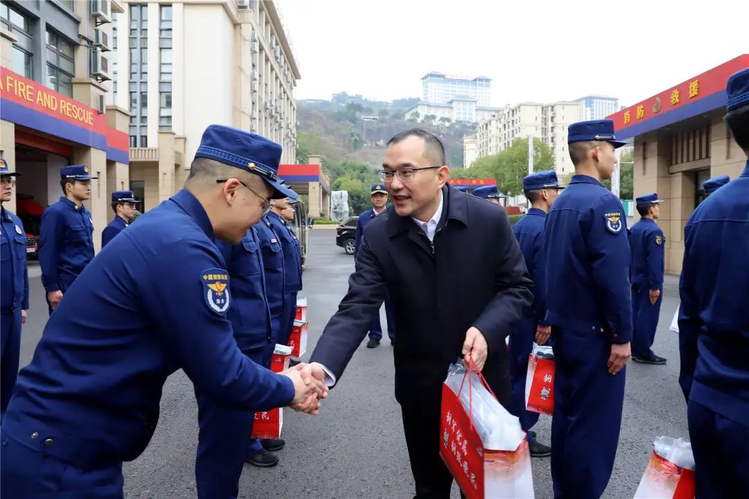 來到縣消防救援大隊、武警云陽中隊,李茂濤看望慰問消防救援指戰(zhàn)員和駐云官兵,詳細了解工作、生活和訓練等情況,向他們送上新春美好祝福。李茂濤說,云陽經(jīng)濟發(fā)展、社會穩(wěn)定、人民安居樂業(yè),離不開廣大官兵和消防指戰(zhàn)員的保駕護航。要繼續(xù)發(fā)揚優(yōu)良傳統(tǒng)和良好作風,強化使命擔當、忠實履職盡責,全力以赴防風險、保安全、護穩(wěn)定、促發(fā)展,為加快建設(shè)山區(qū)庫區(qū)強縣富民示范縣提供堅強保障。相關(guān)部門要弘揚擁軍優(yōu)屬光榮傳統(tǒng),大力支持國防和軍隊建設(shè),用心用情為廣大官兵解除后顧之憂。