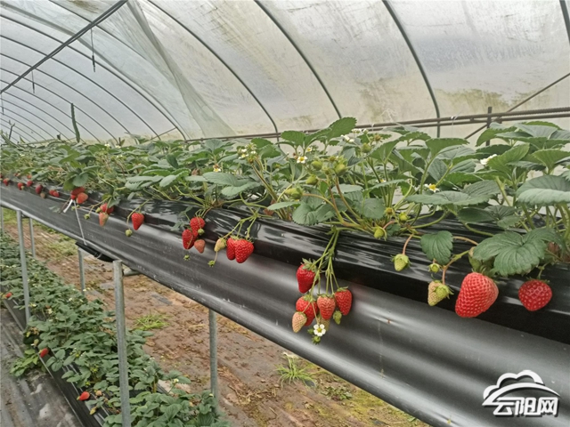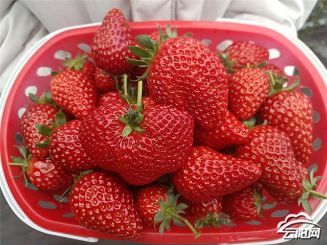 走進大棚內(nèi),清甜的果香撲面而來,只見所有的草莓并不是長在田壟上,而是栽培在一排排一米余高的鋼架上。一顆顆粒大飽滿的草莓泛著讓人垂涎欲滴的光澤,煞是喜人。