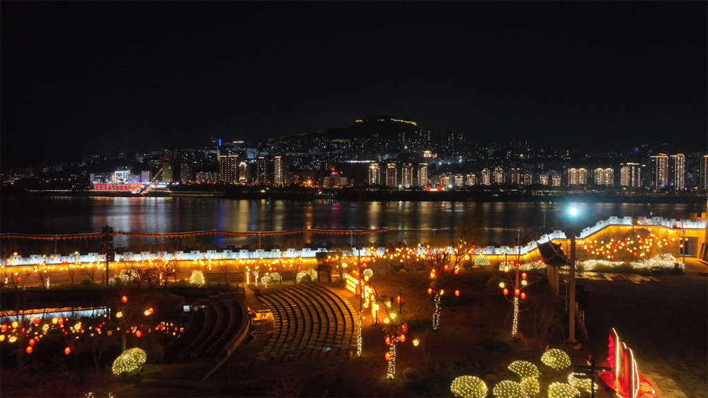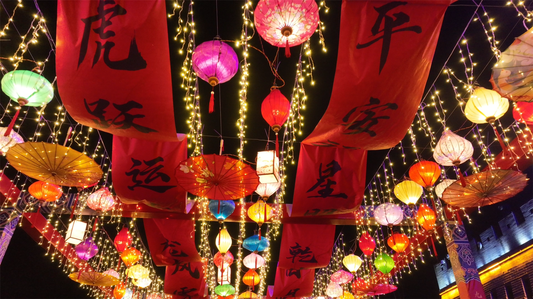 夜幕降臨,城市的夜逐漸變得絢麗多姿、風(fēng)情萬種。從夜空俯瞰,萬家燈火與一個(gè)個(gè)充滿國潮風(fēng)的小燈籠和閃亮的五角星交相輝映,在體現(xiàn)傳統(tǒng)文化魅力的同時(shí),也烘托出濃濃的年味。而穿行其間,猶如置身于華燈如晝的畫卷之中。