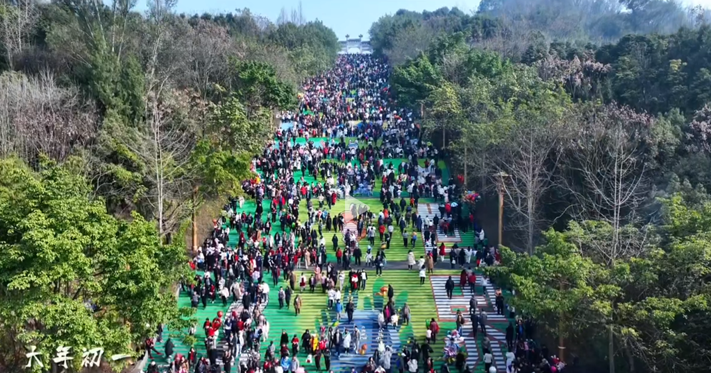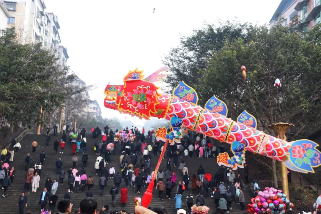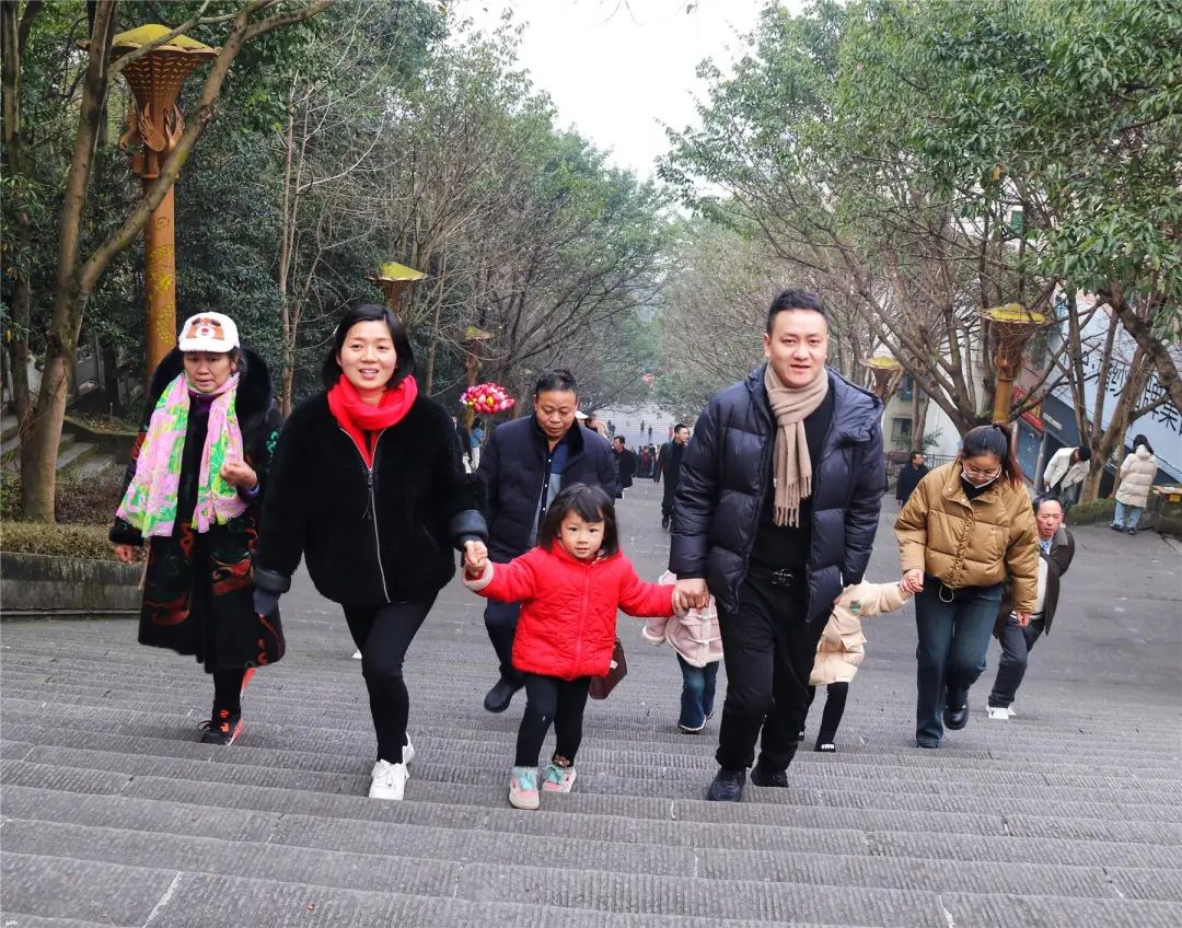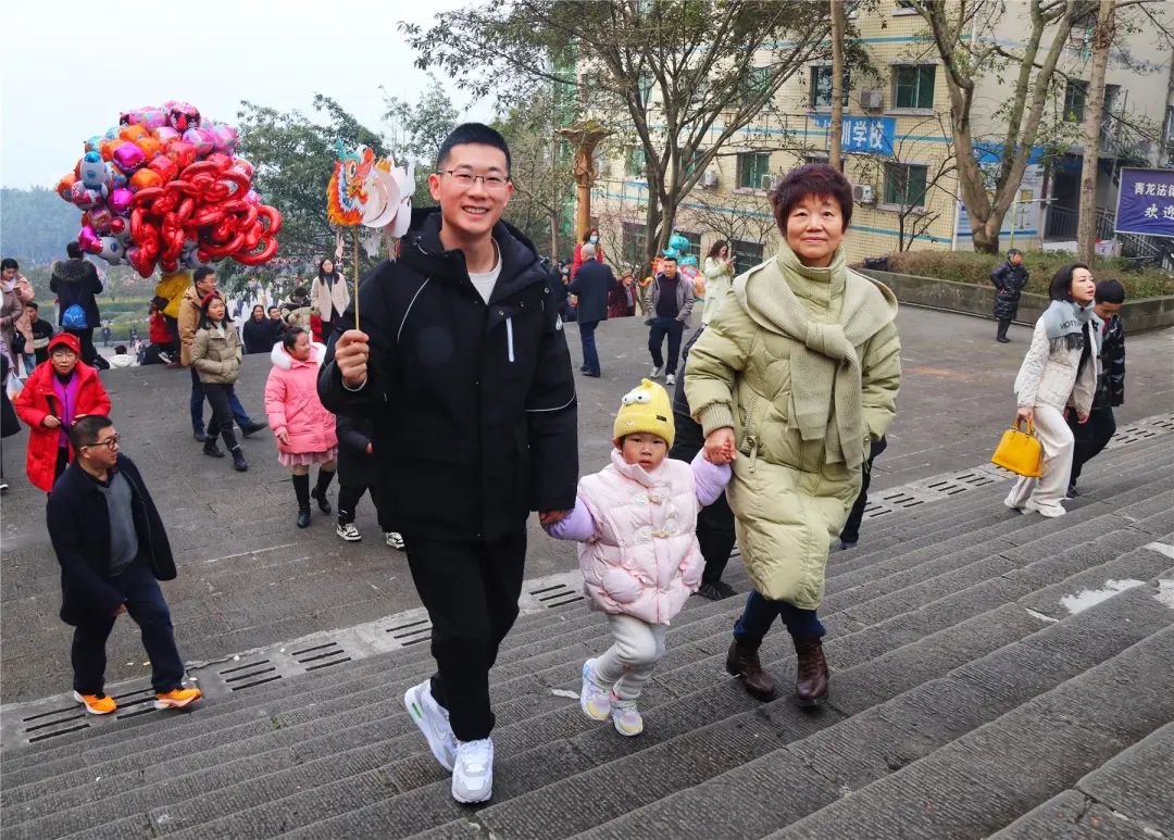“云陽登云梯從江邊一直到山頂,我們真是不虛此行,太壯觀了,也非常有年味兒?!苯衲昱e家來云過年的安徽游客王先生開心地表示。