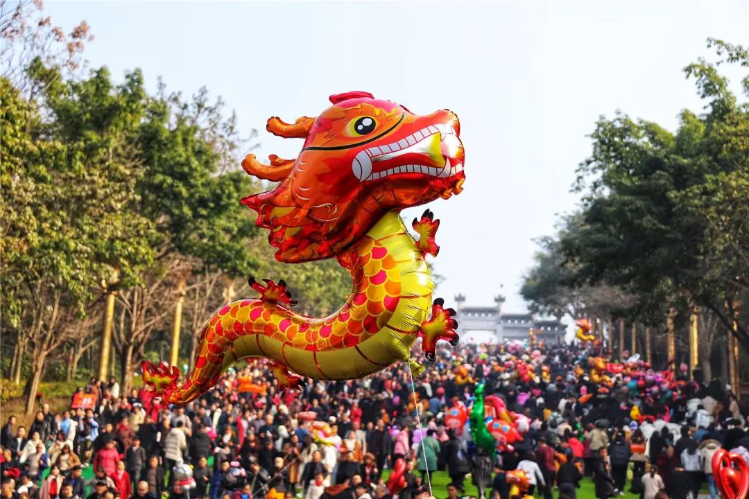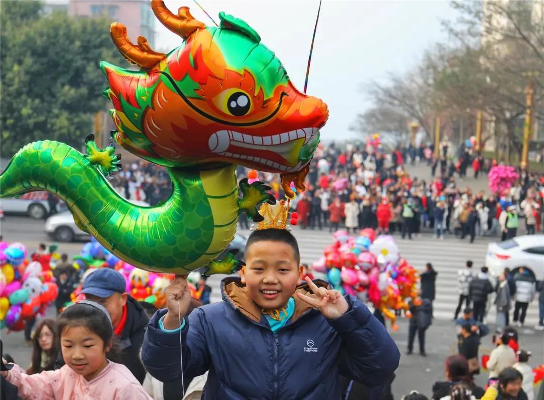 小朋友們手中形態(tài)各異、五顏六色的中國龍