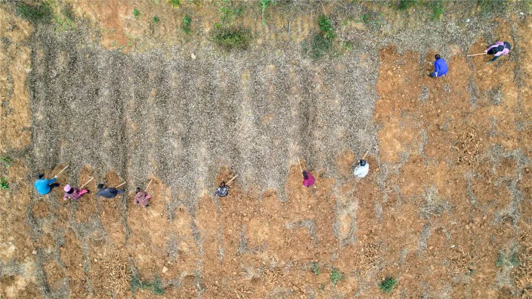 只見他們揮舞著鋤頭,刨去地上的葛根藤蔓