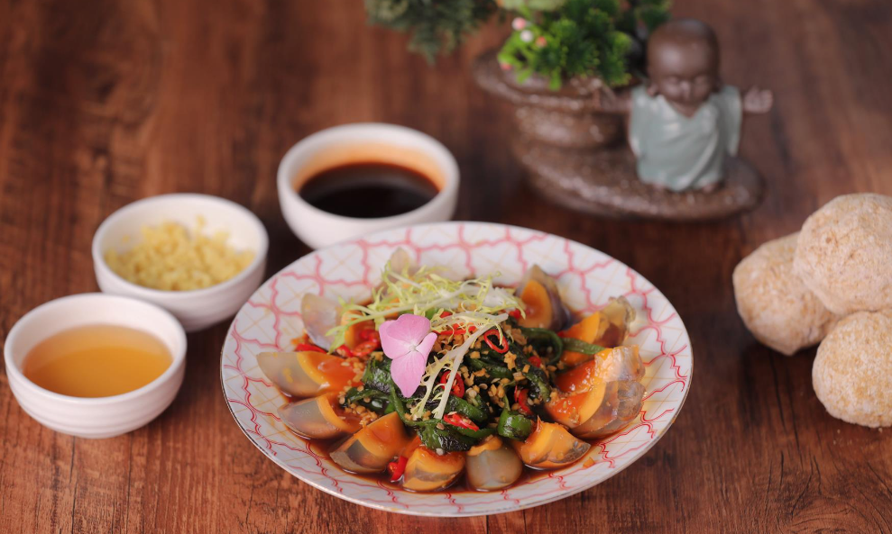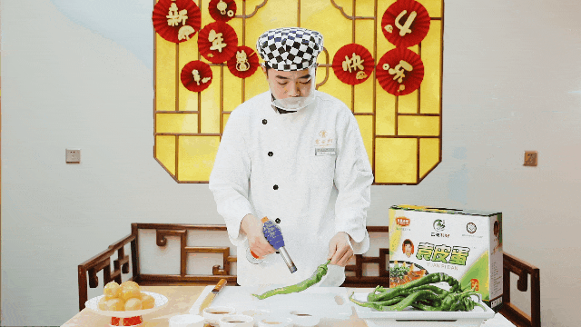 論起吃皮蛋的花樣,那也是因地制宜,靈活多變,種類(lèi)豐富,各具特色。皮蛋最受歡迎最普遍的做法,便是燒椒皮蛋。用炭火或者噴槍將青椒表面灼燒一遍,去掉辣椒的生澀,待其疲軟過(guò)后再撕成細(xì)長(zhǎng)條,燒椒和皮蛋一起擺盤(pán),再加上醬油、醋、糖、小米辣等作料,一盤(pán)川渝特色風(fēng)味菜就制作完成。切開(kāi)的皮蛋最內(nèi)層蛋黃半融,處在流心和凝固的臨界點(diǎn)上,細(xì)膩又綿軟,外層蛋白Q彈爽脆,再加上青椒的加持,風(fēng)味獨(dú)特,鮮美爽口,下酒開(kāi)胃一絕。