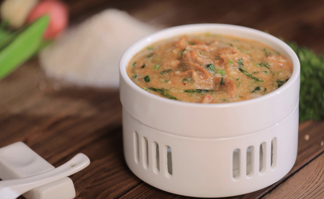 鲊肥腸發(fā)酵越久,酸味越甚,1個(gè)月啟壇食用,酸味適中,壇香十足,更符合大部分人口味。取出的鲊肥腸先上蒸箱蒸半小時(shí),再加清水煮沸,加入青菜、紫蘇、香菜等新鮮蔬菜和蔥姜、香油調(diào)味,鲊肥腸羹便制作完成。經(jīng)過腌制的鲊肥腸,味道偏咸,做成湯羹,加入新鮮蔬菜,使其咸味適中。這道菜羹,肥腸入口醇厚,細(xì)嫩綿軟,鮮中帶辣,香中裹甜,為眾多食客所喜愛。