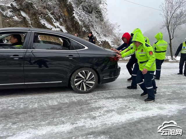 云陽網(wǎng)訊(記者 曾麒麟)這兩天,隨著強勢寒潮來襲,我縣高海拔鄉(xiāng)鎮(zhèn)普降小到中雪,部分路段出現(xiàn)道路結(jié)冰現(xiàn)象,縣公安局交巡警大隊立即組織人員趕往現(xiàn)場疏導(dǎo)、指揮、救助來往車輛,在雨雪天氣全力守護群眾出行平安。
