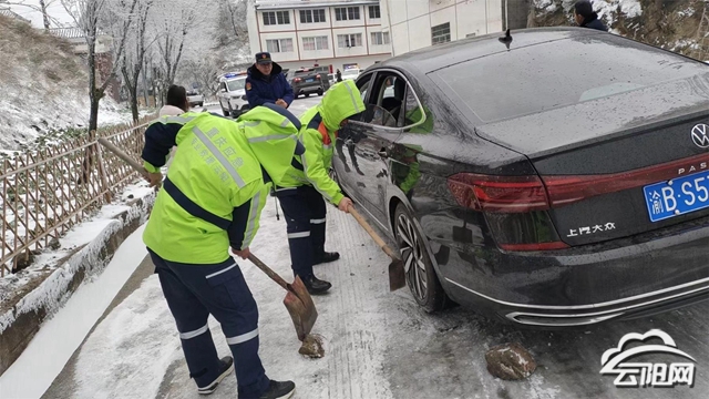 “我們昨天收到氣象部門的預(yù)警后,就啟動了應(yīng)急預(yù)案。通過早上開始的巡邏防控發(fā)現(xiàn)茶廠路段有結(jié)冰的現(xiàn)象,所以我們趕緊趕赴現(xiàn)場處置?!痹脐柨h公安局交巡警大隊清水公巡中隊相關(guān)負責人表示,在未下雪結(jié)冰之前,提供防滑鏈給受困車輛進行救助,并聯(lián)系公路部門進行撒鹽除冰融雪,使路面保持暢通。