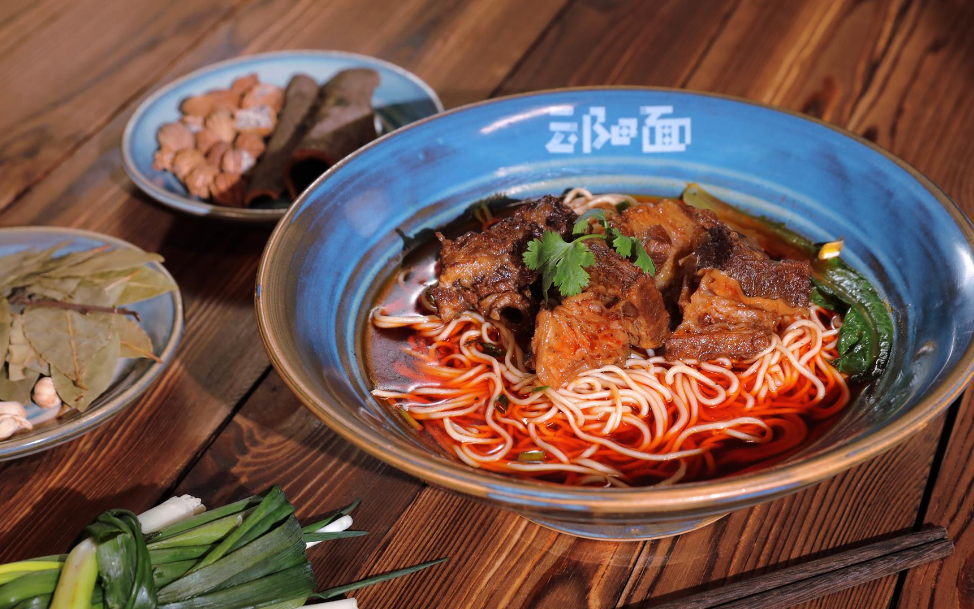 牛肉面采用的是堿面,下鍋煮后可以最大限度地吸收湯汁,卻不糊湯,煮出來(lái)的面條韌勁十足。堿水面入碗,倒上用秘制牛骨精心慢熬的高湯,再鋪上秘制的鹵牛肉,一碗爽滑渾厚的云陽(yáng)面充實(shí)著云陽(yáng)人的味蕾。