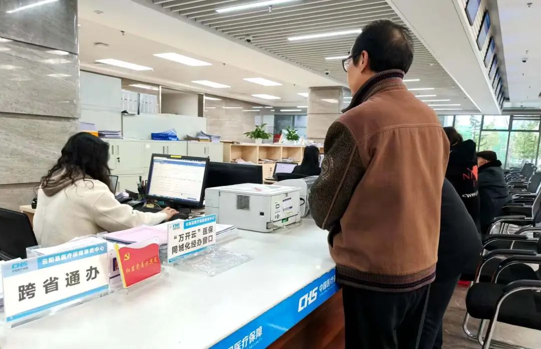 走進(jìn)縣醫(yī)療保障事務(wù)中心,首先映入眼簾的便是“跨省通辦”標(biāo)識窗口,來往的辦事群眾絡(luò)繹不絕,工作人員在各自的崗位上耐心地為群眾答疑解惑。