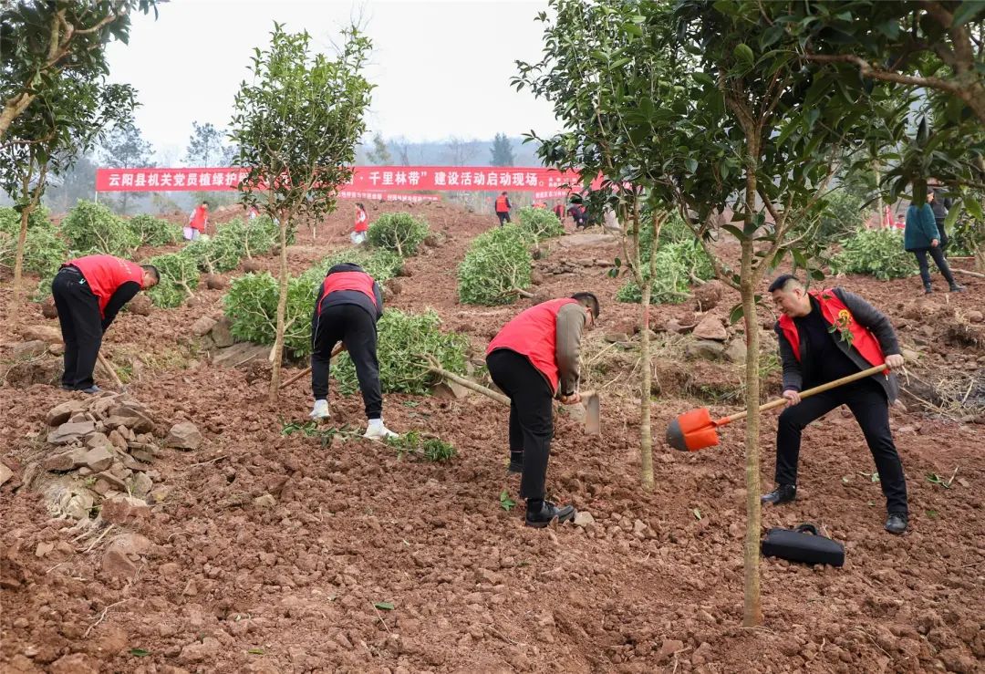云陽(yáng)每年依托“我為祖國(guó)植10棵樹(shù)”全民義務(wù)植樹(shù)活動(dòng)種植各類(lèi)樹(shù)木300萬(wàn)株。日前,300余名干部群眾、志愿者來(lái)到縣級(jí)義務(wù)植樹(shù)基地青龍街道楊沙社區(qū)開(kāi)展植樹(shù)活動(dòng),挖坑、扶樹(shù)、培土、澆水,經(jīng)過(guò)1個(gè)多小時(shí)的辛勤勞動(dòng),栽下桂花、櫻花、水杉等珍貴樹(shù)種1000余株。用實(shí)際行動(dòng)踐行綠水青山就是金山銀山理念,筑穩(wěn)筑牢長(zhǎng)江上游重要生態(tài)屏障,為美麗中國(guó)再添新綠。