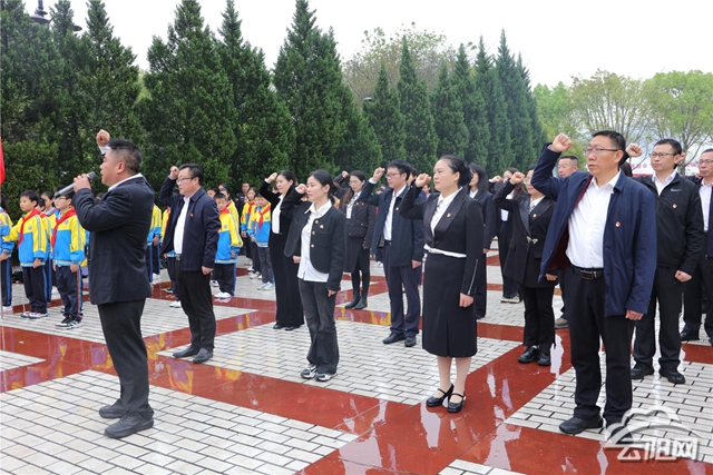 在莊嚴(yán)肅穆的紀(jì)念碑前,全體黨員、少先隊(duì)員重溫入黨、入隊(duì)誓詞。少先隊(duì)員代表講述革命英雄故事《銘記紅巖魂》,接著全體人員向革命烈士鞠躬默哀,敬獻(xiàn)花籃、瞻仰紀(jì)念碑、寄托心中的哀思。最后,全體師生齊唱《沒有共產(chǎn)黨就沒有新中國(guó)》。