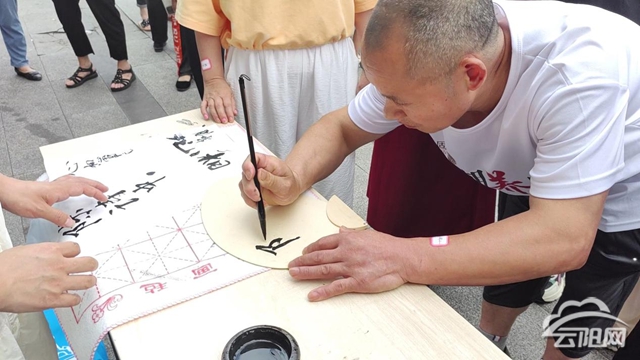 現(xiàn)場(chǎng)設(shè)置了分組游戲區(qū)和手工體驗(yàn)區(qū),游戲區(qū)內(nèi)有粽子冰壺、釣粽子、手腳并用和蒙眼貼五毒等趣味游戲,每個(gè)游戲都巧妙地融入了端午節(jié)的傳統(tǒng)元素,讓參與者在歡樂(lè)中感受節(jié)日氛圍。手工體驗(yàn)區(qū)則提供了書(shū)法團(tuán)扇DIY的機(jī)會(huì),居民們?cè)谶@里親手制作屬于自己的團(tuán)扇,將書(shū)法藝術(shù)與端午節(jié)的傳統(tǒng)風(fēng)俗相結(jié)合,體驗(yàn)中華文化的魅力。