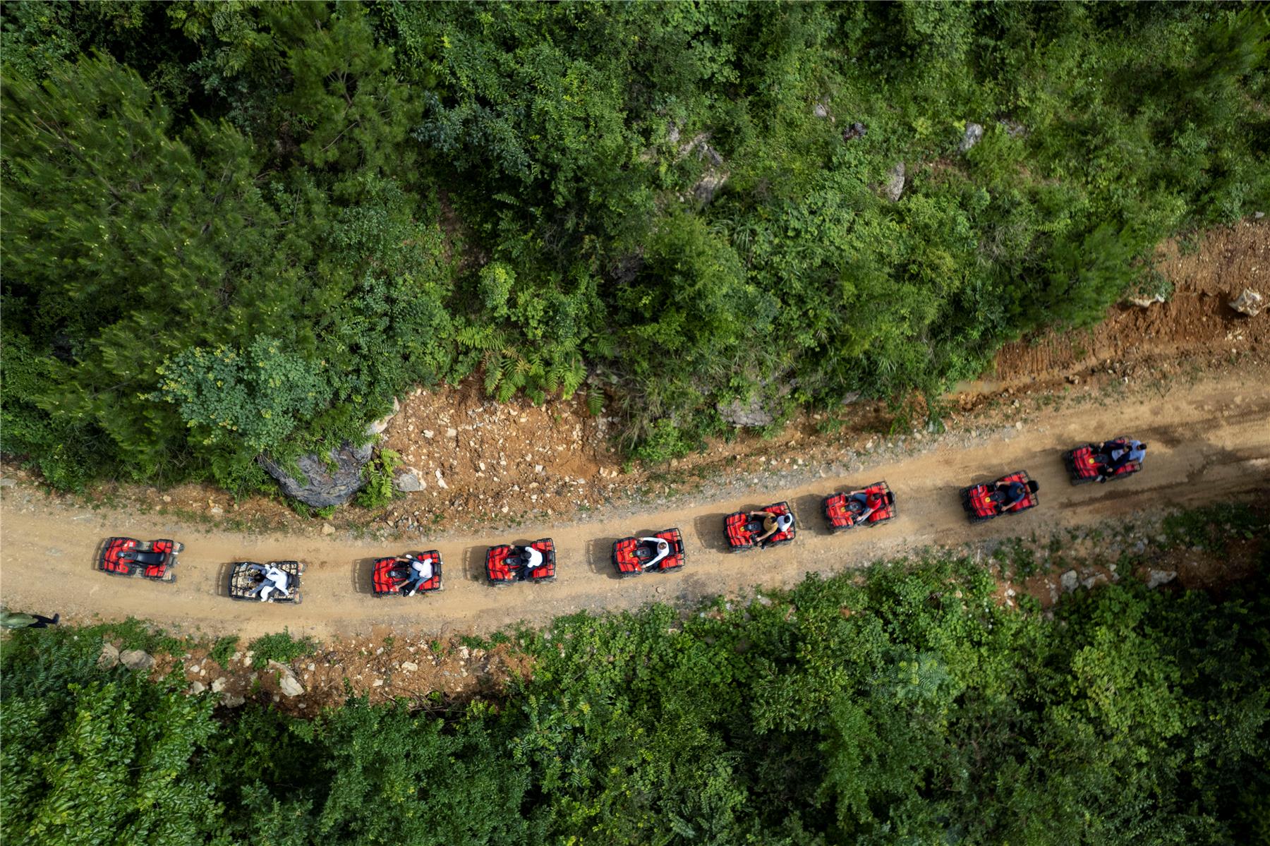 該戶外越野營地建在洞鹿鄉(xiāng)青康村6組草坪梁,海拔1100余米,最高處由1200余米,垂直高度100多米,線路10余公里的環(huán)形賽道,以天然森林防火通道為主,大多數(shù)是原生態(tài)的山路,驚險、刺激,道路外面有50至80公分的護砍,跑起來十分安全;在叢林還布置了真人CS對戰(zhàn)。