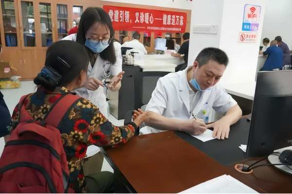 義診現(xiàn)場,醫(yī)護人員為群眾測量血壓、血糖,并進行健康檢查,提供專業(yè)的醫(yī)療建議。