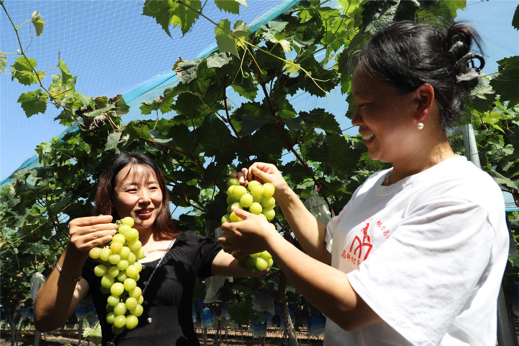 “我們每年都跟朋友來這里采摘游玩,這里的葡萄便宜好吃,皮薄肉厚,汁多味甜?!背灾鴦傉碌钠咸?,丁女士點贊道。
