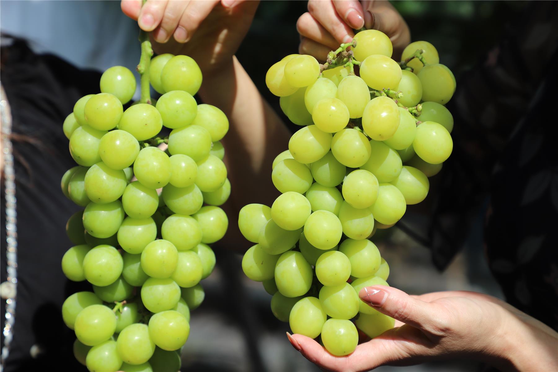 經(jīng)過精細化疏花疏果,每串葡萄控制在60至100顆,整串重量在0.5公斤至0.75公斤。因為葡萄品質高,自5號開園以來已銷售近6000斤,掛果率占9成,預估今年產量將近10萬斤,產值60萬元左右。“明年我們還將新增巨峰和巨玫瑰兩個新品種,大約在明年開始掛果,后年正式投產,以此吸引更多的游客前來體驗?!?/p>