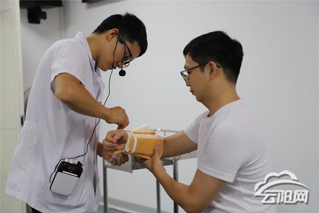 活動現(xiàn)場,三位中醫(yī)繼承人集體向前輩們呈拜師帖、行拜師禮、敬茶、獻花,締結(jié)師徒緣分。隨后醫(yī)護人員展示了海姆立克急救法、心肺復蘇、骨折與夾板固定等項目,參賽選手準備充分、態(tài)度嚴謹、操作嫻熟準確、動作流暢精準,展現(xiàn)出扎實的基本功及良好的職業(yè)素養(yǎng)。當天,醫(yī)師們還重溫了學醫(yī)誓詞,表達了捍衛(wèi)醫(yī)者初心、守護人民健康的決心與擔當。