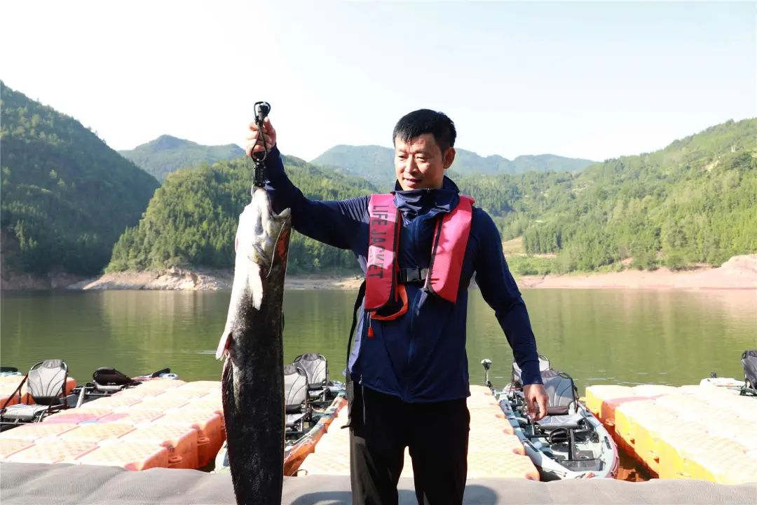 “早就聽說(shuō)清水湖環(huán)境優(yōu)美,魚也鮮嫩,以前沒(méi)來(lái)過(guò),現(xiàn)在來(lái)了感受確實(shí)不錯(cuò)。釣到魚就很興奮,和這么多釣友一起釣魚也很享受。”釣魚愛好者熊勇和搭檔配合默契,釣起了一條20斤重的大鯰魚。