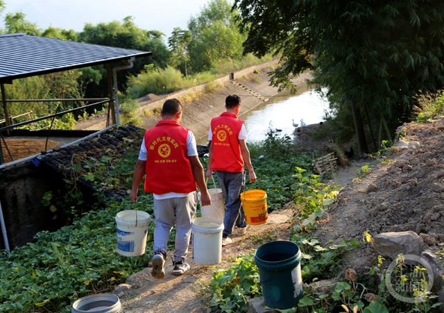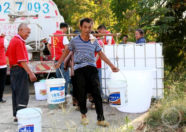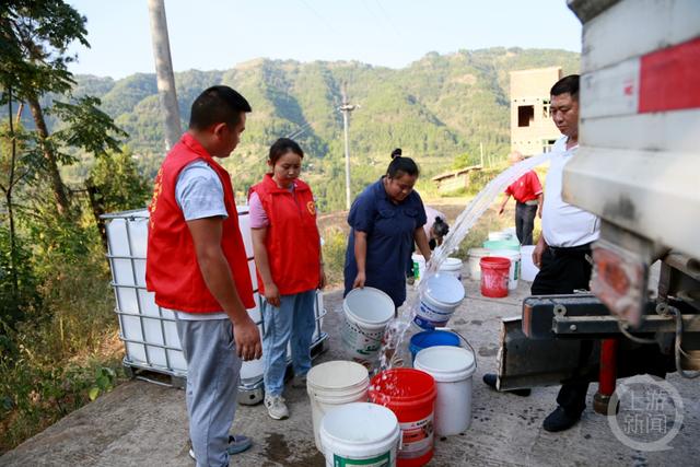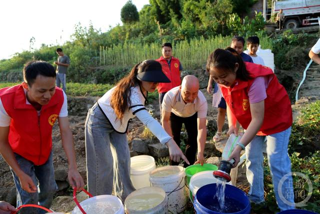 在云陽縣云安鎮(zhèn)三灣村,村民們紛紛拿著水桶、水盆等工具,在志愿者的幫助下有序地接水、提水。