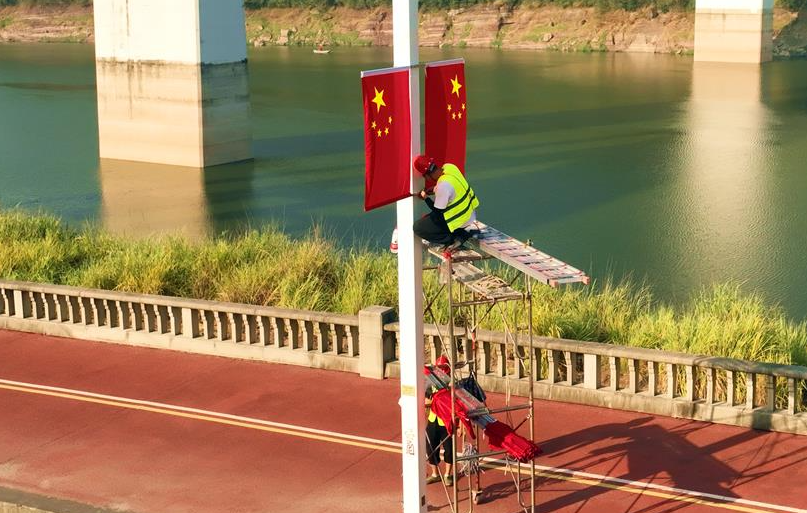 “我們深度融合傳統(tǒng)技術與科技創(chuàng)新,在城區(qū)兩橋一站、迎賓大道等重點區(qū)域,安裝傳統(tǒng)國旗1200余面,設置智慧路燈電子國旗600余面,預計在9月25日前完成安裝工作。”縣市政設施管理所相關負責人介紹。