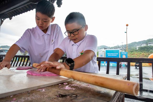 川渝兩地青少年們學(xué)習(xí)制作杠子面,體驗云陽傳統(tǒng)面食文化。