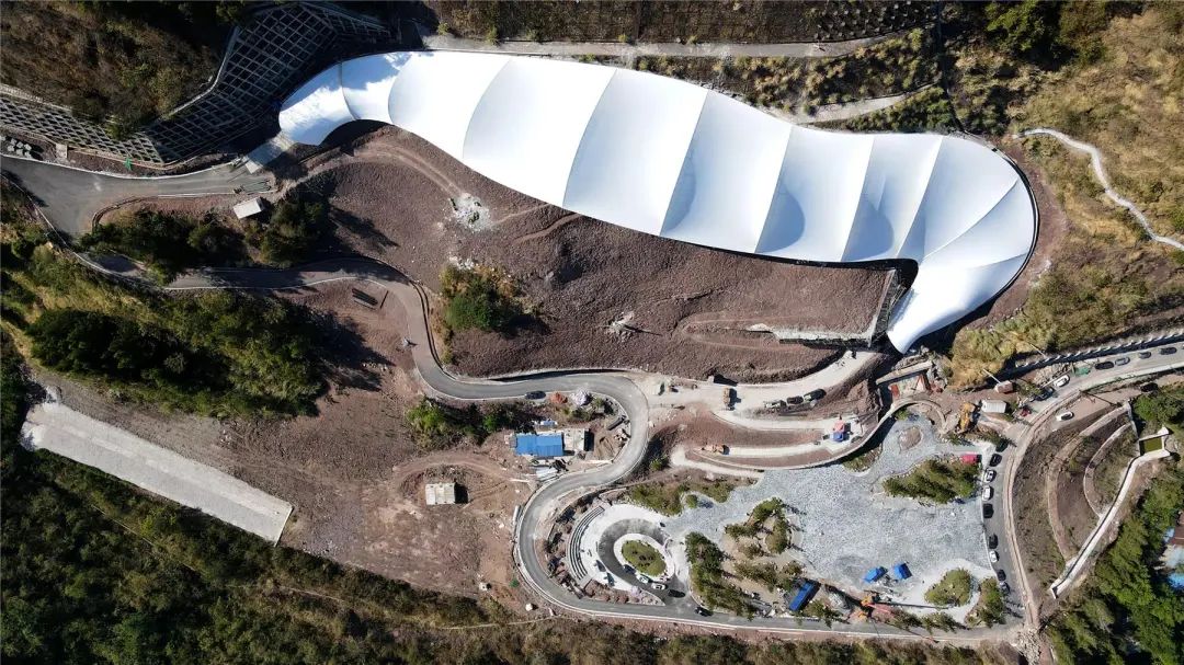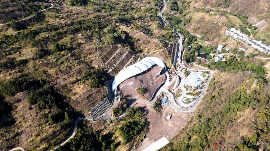 云陽(yáng)地質(zhì)公園恐龍化石遺址館東西長(zhǎng)約180米