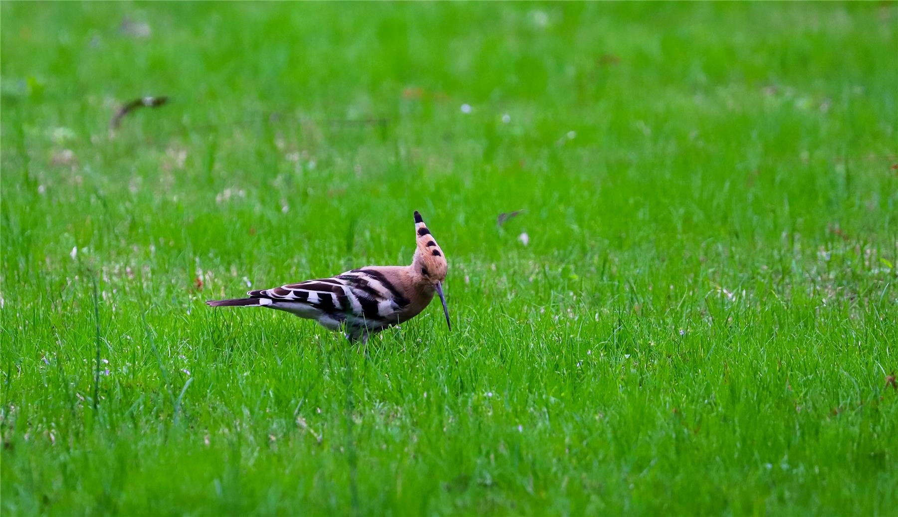 “當(dāng)時(shí)拍的時(shí)候發(fā)現(xiàn)這只鳥有點(diǎn)特別,它頭戴頂“皇冠”,羽毛五顏六色,有點(diǎn)像啄木鳥?!睌z影愛好者伍小奉告訴記者,鏡頭中戴勝靈動(dòng)優(yōu)雅,在草坪中悠然自在地覓食,還不時(shí)展示艷麗的羽冠,樣子十分可愛。