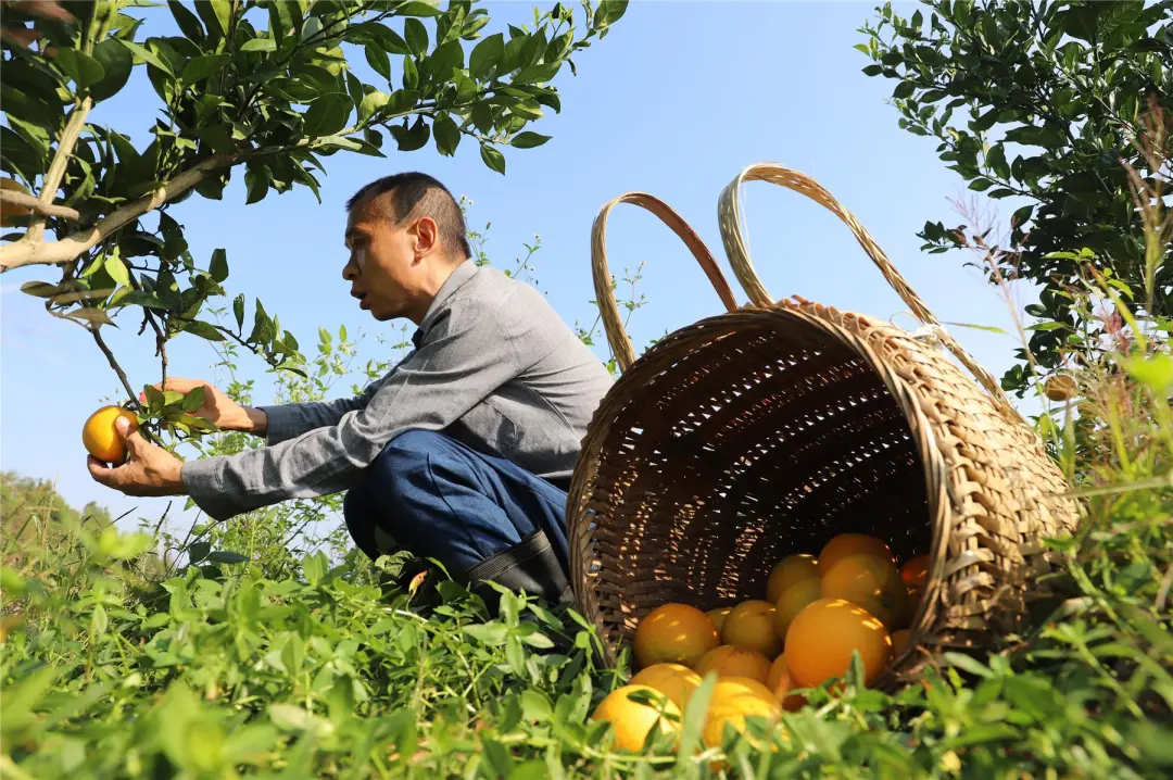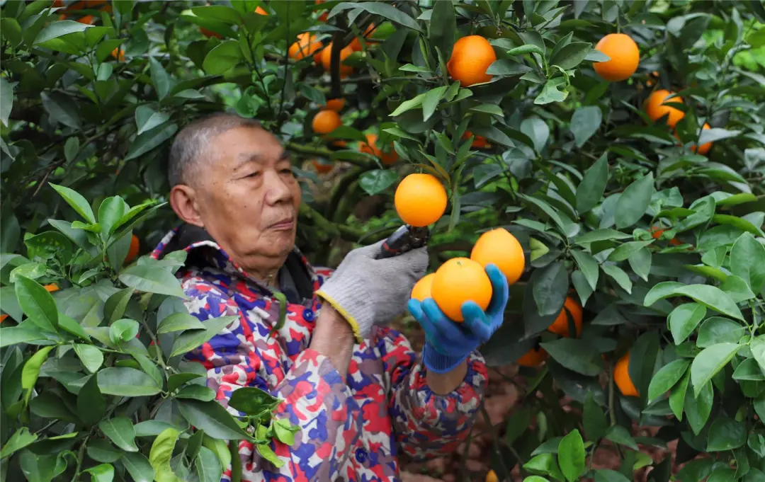 在柑橘種植戶趙小平的果園,熹微的陽(yáng)光將樹影拉得修長(zhǎng),滿樹圓潤(rùn)飽滿的“小金果”為滿目碧色增添了耀眼的點(diǎn)綴。趙小平手持剪刀,輕輕一剪,再將一顆顆“小金果”輕輕放入簍中,整個(gè)過程都充滿了對(duì)果實(shí)的愛護(hù)。