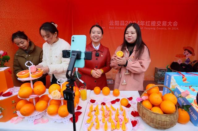 ▲2024年12月20日,云陽縣,2024云陽紅橙交易大會開幕式現場,市民正在直播售賣臍橙。記者尹詩語攝/視覺重慶