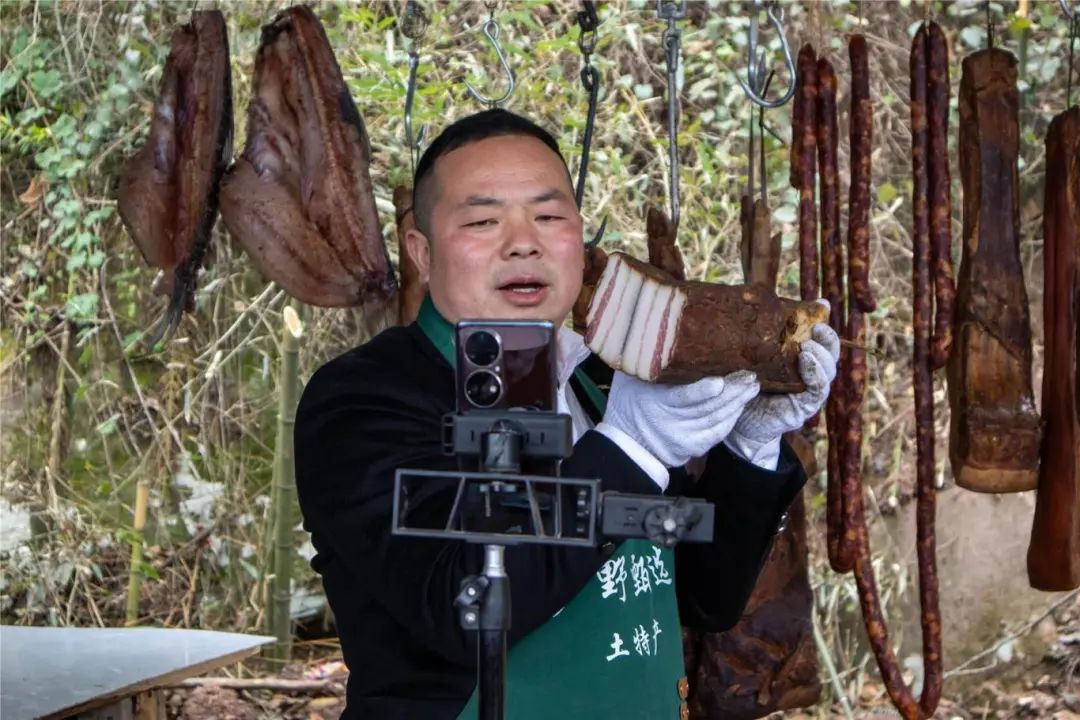 每一次春節(jié)前回到家鄉(xiāng),譚榮洪家里都會(huì)制作臘肉,那獨(dú)特的風(fēng)味和傳統(tǒng)的手工技藝傳承至今。譚榮洪發(fā)現(xiàn),隨著人們生活水平的提高,人們對(duì)于綠色、天然、具有地方特色的食品需求日益增長(zhǎng),而臘肉作為一種極具地域代表性的美食,有著廣闊的市場(chǎng)前景。于是,在2023年譚榮洪決定以傳承和發(fā)揚(yáng)傳統(tǒng)臘肉文化為核心,打造一個(gè)獨(dú)具特色的臘肉品牌。“在力所能及地解決好自己溫飽,照顧好自己家庭的同時(shí),希望為社會(huì)創(chuàng)造價(jià)值,也實(shí)現(xiàn)自己的人生價(jià)值。”譚榮洪說(shuō)。
