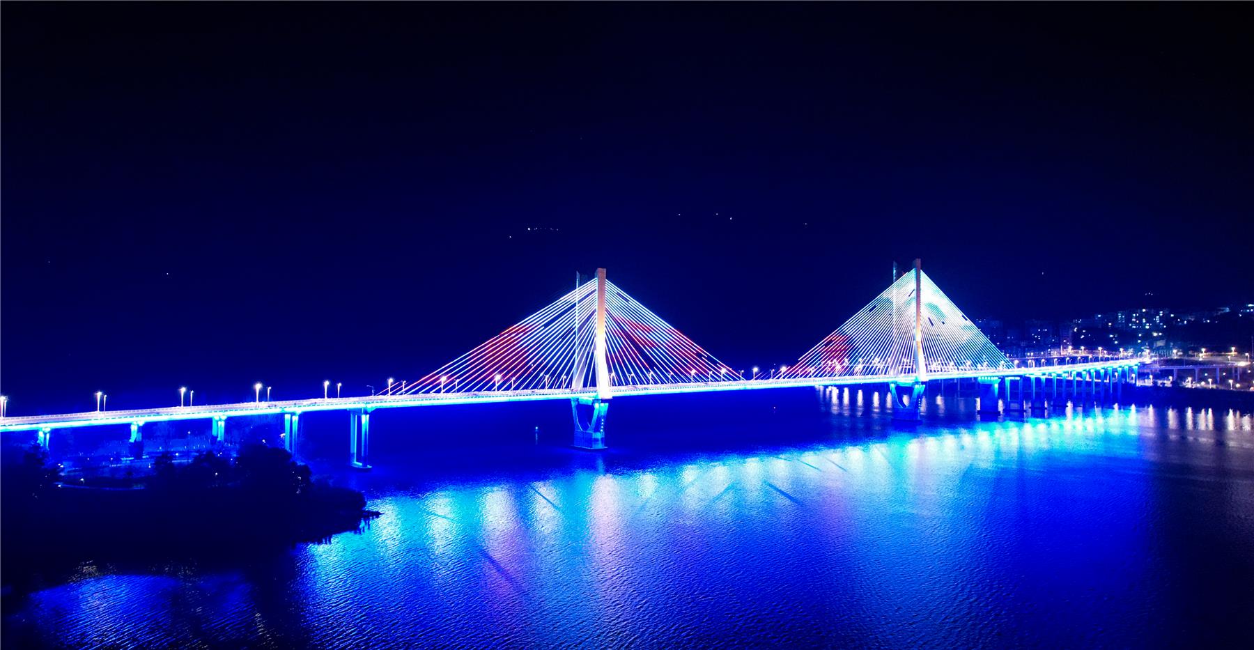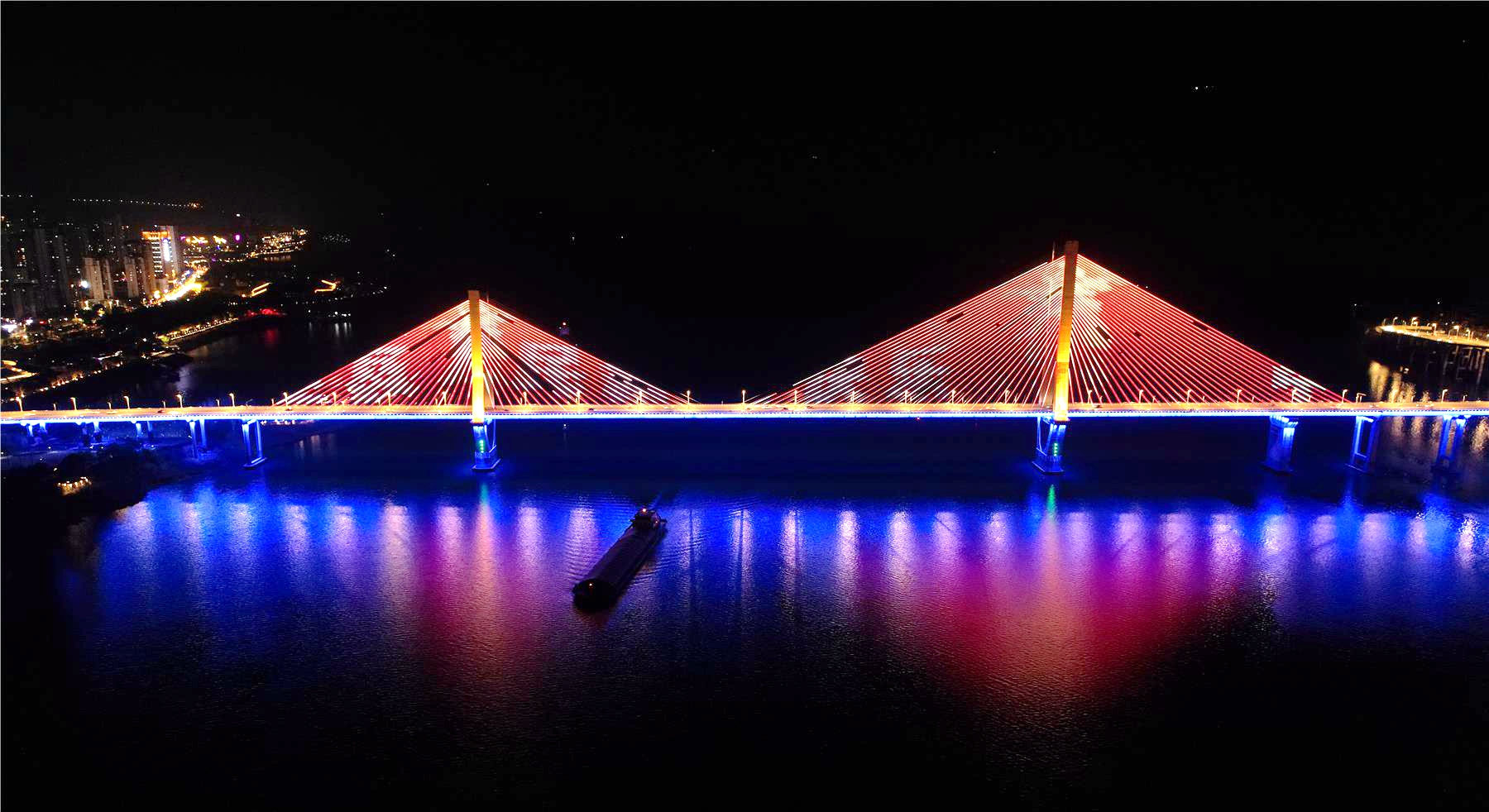 當(dāng)夜幕降臨,華燈初上,云陽縣長江大橋,上萬余盞景觀燈具將大橋裝扮一新,大橋懸索兩側(cè)霓虹閃爍,五彩斑斕,以橋為屏,用燈光為墨,科技感與時尚感交融的燈光秀給城市增添了一道亮麗的風(fēng)景線,吸引了不少市民紛紛駐足觀看。