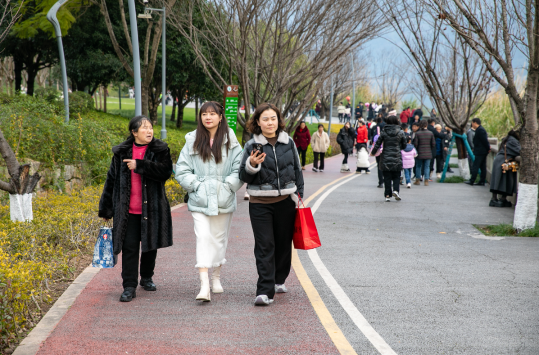 他和妻子、女兒漫步在環(huán)湖綠道之上