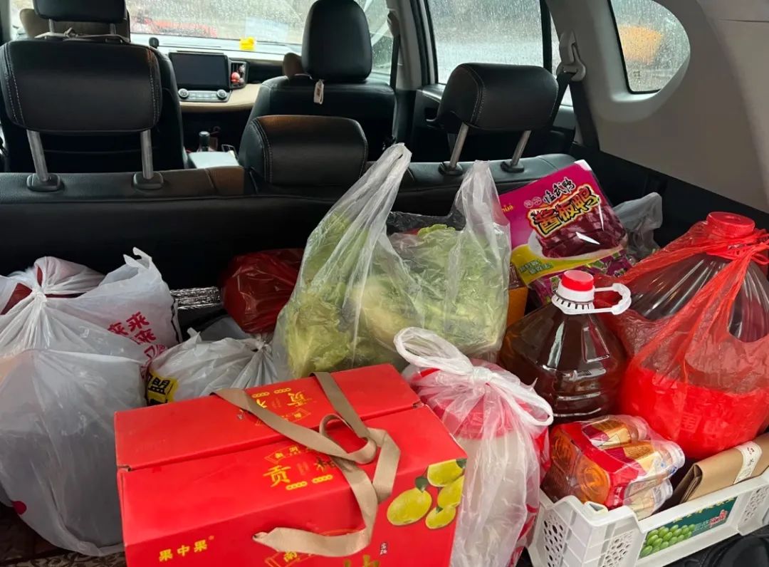土雞、青菜、紅薯、肉粽,還有小時候愛吃的甜點,后備箱裝滿了媽媽的愛。
