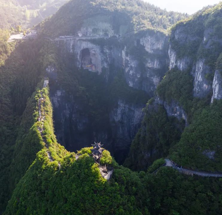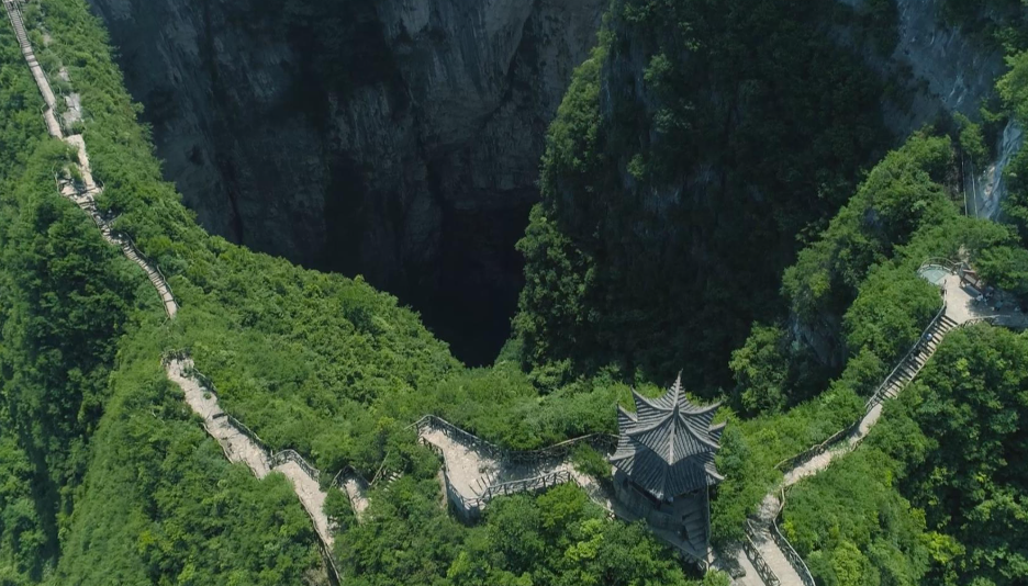 號(hào)稱“天下第一缸”深不見底的天坑,四周懸崖峭壁,漫步于玻璃棧道,俯瞰天坑,感受大自然的鬼斧神工!
