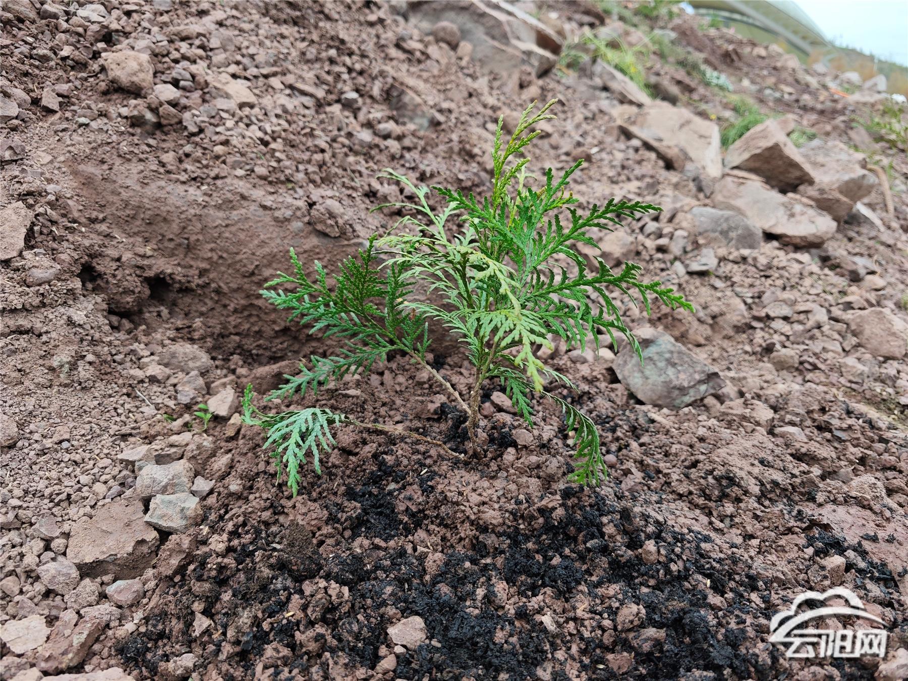 在植樹現(xiàn)場(chǎng),工人們正忙碌著將崖柏幼苗搬運(yùn)至田間,大家在專業(yè)技術(shù)員指導(dǎo)下,揮鍬刨坑、扶苗培土、提水澆灌...不一會(huì)兒,一株株小幼苗在這里安了家。此刻,跨越億年的“雙向奔赴”,恐龍化石遇見了恐龍時(shí)代的“活化石”。