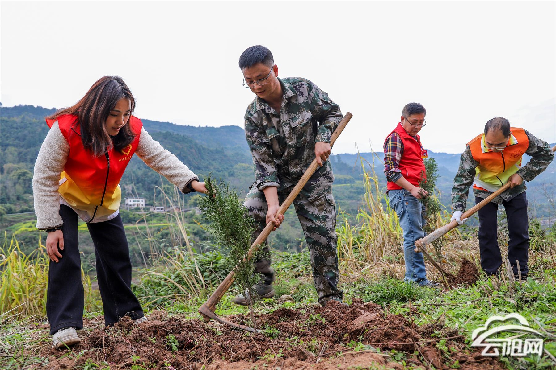"樹坑規(guī)格要確保深30公分,寬30公分,遇到碎石必須清理干凈。"養(yǎng)鹿鎮(zhèn)林業(yè)站站長蒲小山穿梭在植樹隊(duì)伍中進(jìn)行技術(shù)指導(dǎo)。這位從事林業(yè)工作二十年的"老把式"特別強(qiáng)調(diào),新苗栽植要嚴(yán)格執(zhí)行"三水一土"標(biāo)準(zhǔn)——定根水要透、回填土要實(shí)、護(hù)根土要嚴(yán)。志愿者們按照標(biāo)準(zhǔn)化流程協(xié)作,揮鍬培土的動(dòng)作逐漸從生疏變得嫻熟。